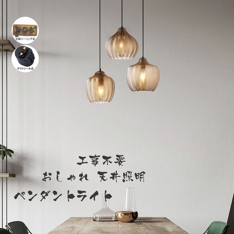 送料無料 ペンダントライト リビング 照明 おしゃれ 明るい 北欧 ガラス ダイニング キッチン ダクトレール 引掛シーリング 天井照明 照明器具 工事不要 23cm*19.5cm