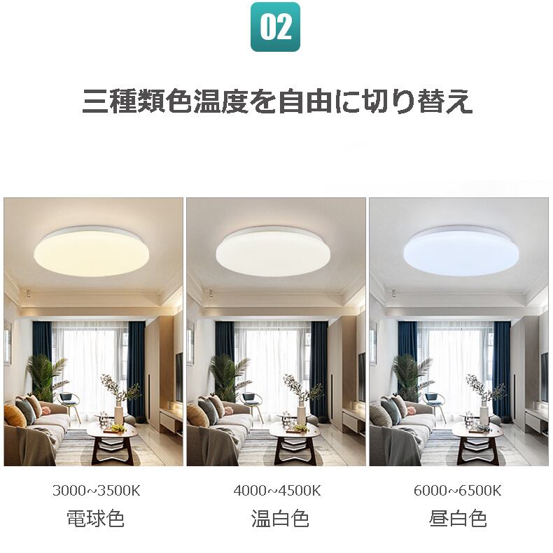 調色:かべスイッチを押すと電球色-温白色-昼光色三段階の色温度を変えます。(リモコン付きません)