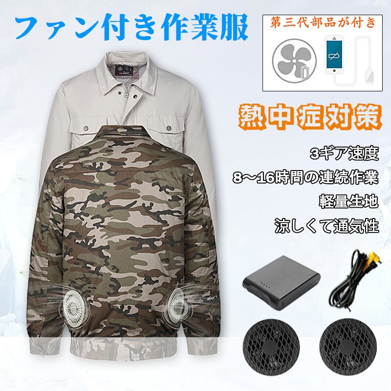 "製品名:空調服セット ワークマン 風 作業服 長袖 空調服 熱中症対策 扇風機 高温環境 空調風神服 ファン付き 風量調整可能 日本語説明書 PSE認証 送料無料