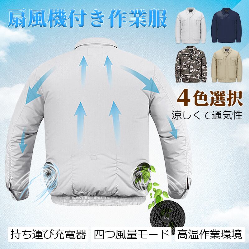 製品名:空調服 ワークマン 風 長袖 作業服空調服セット 扇風機 バッテリー付き 空調風神服 ファン付き 風量調整可 日本語説明書 PSE認証 送料無料