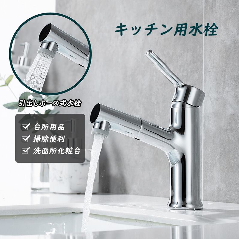 混合水栓 蛇口交換自分で 引出しホース式 ハンドシャワー 伸縮ノズル 温水冷水 キッチン 洗面ボール 手洗い鉢 手洗器 洗面器 流し台 台所用 蛇口