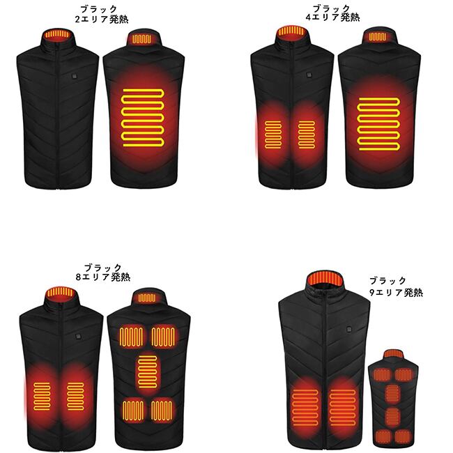 製品名:電熱ベスト 加強版 9エリア発熱 ヒーターベスト USB加熱ベスト電熱ウェア 加熱服 3段温度調整 防寒着 秋冬用 男女兼用 水洗い可能 通勤 冷え性に対応