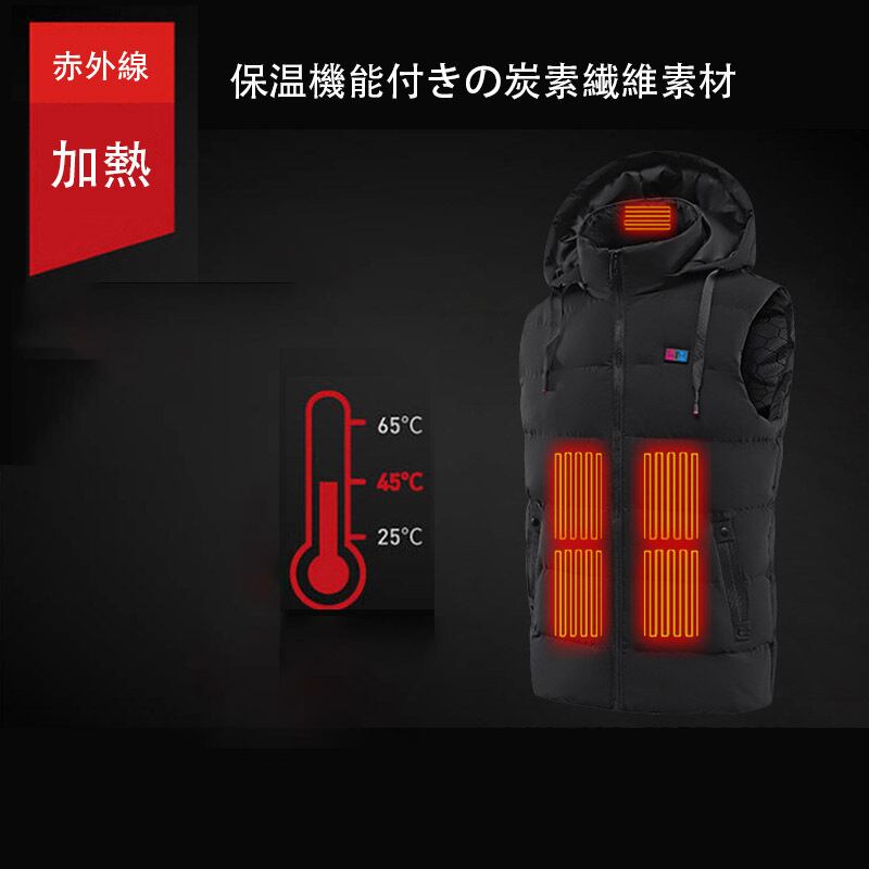電熱ベスト 11箇所発熱 バッテリー付 加強版 加熱服 独立温度制御 ヒーターベスト 暖かい 防寒着 秋冬用 フード付き 最新 新品 USB おすすめ