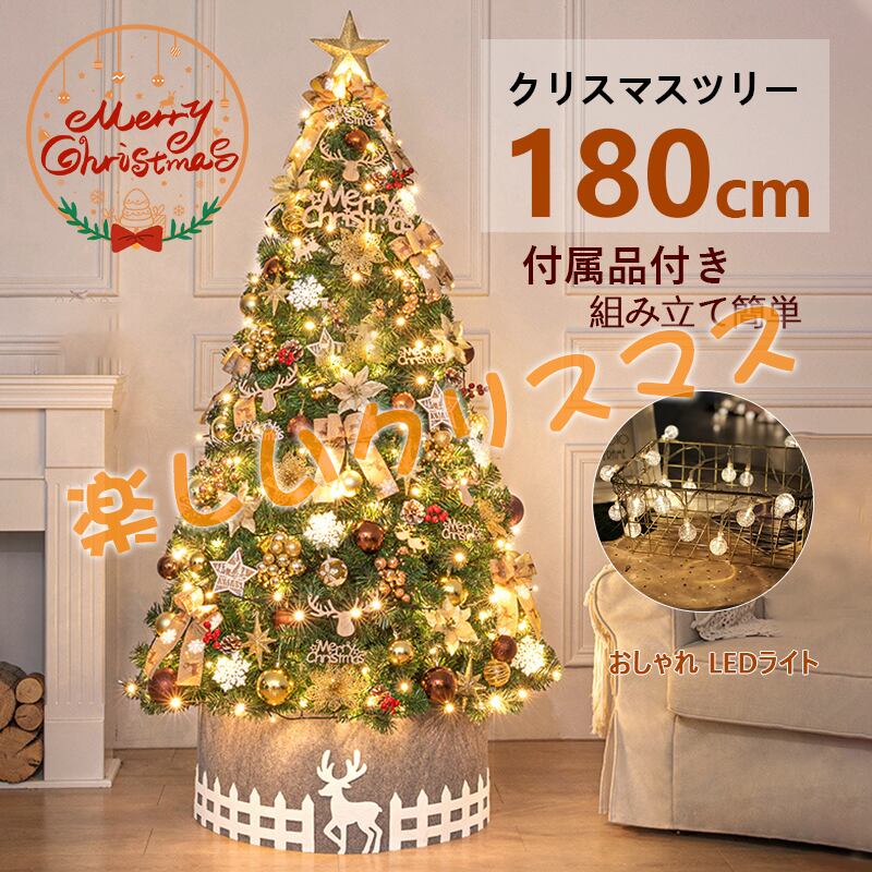 クリスマスツリー 180cm クリスマスツリーセット オーナメントセット オーナメント LED ツリー プレゼント 飾り christmas Xmasツリーセット